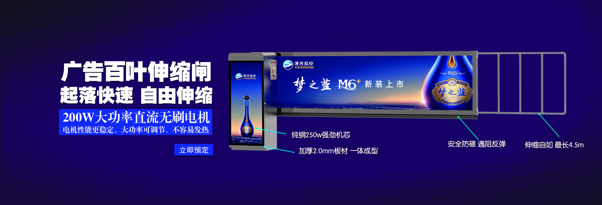 公司創(chuàng)建于2010年,是國內(nèi)智能出入管理系統(tǒng)行業(yè)最具規(guī)模的集研發(fā)設(shè)計、生產(chǎn)制造、營銷推廣于一體的品牌企業(yè)之一。公司主打產(chǎn)品為拉布燈箱閘、車牌識別道閘一體機(jī)、廣告伸縮道閘、百葉廣告道閘、直桿道閘、柵欄道閘、折臂道閘、智能人行門、車牌識別、廣告護(hù)欄等。